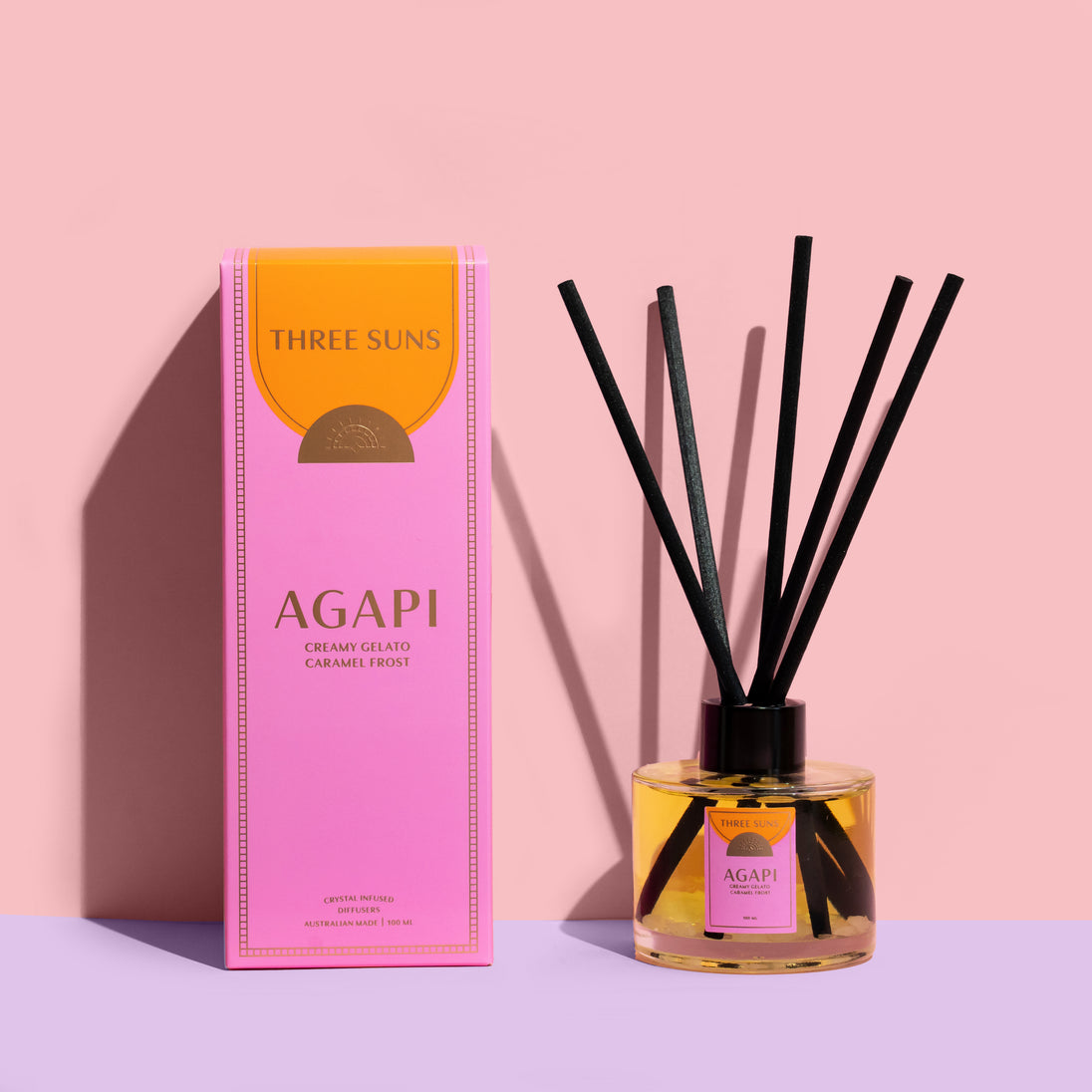 Our Diffuser of Love - Agapi' is a timely gift for someone who you love, or who may desire to be loved. Place our Three Suns diffuser inside your home/office or inside your bathroom, to experience first-hand the immediate feeling of Love, Serenity, and Calmness along with the intoxicating smell of Creamy Gelato & Caramel Frost